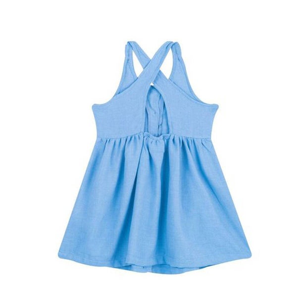 Lichtblauw kleedje in een zomers stofje van het merk Mini Rebels.