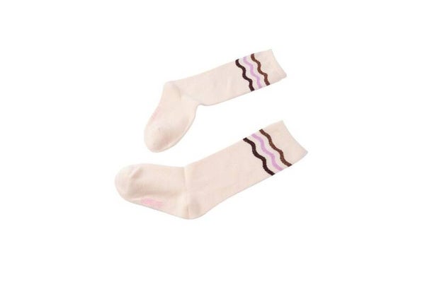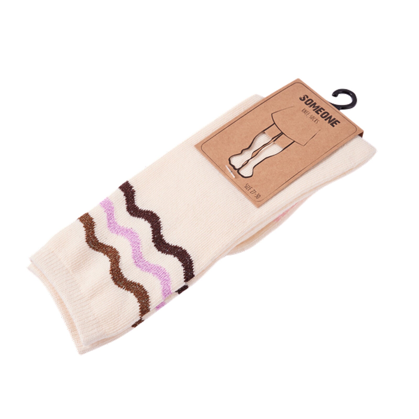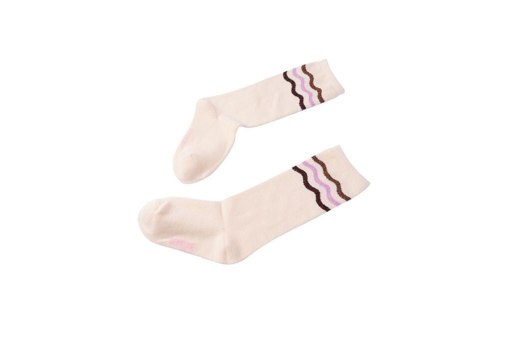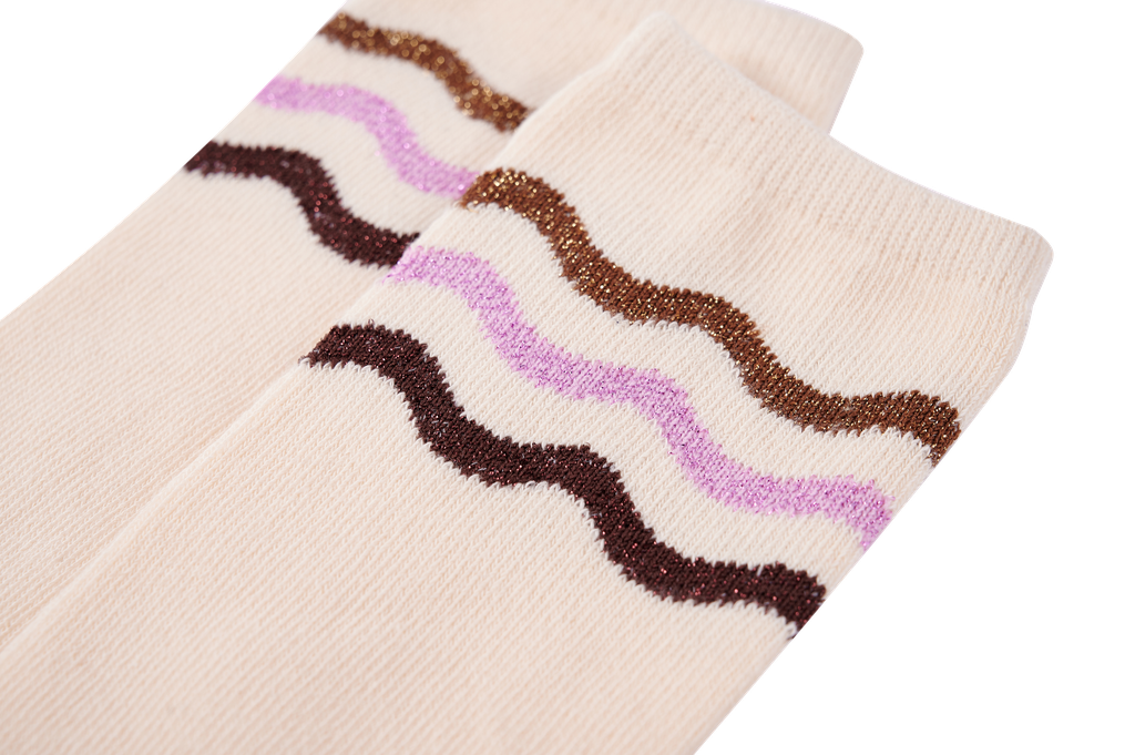 Ecru kniekousen met golfjes en glitter bovenaan.