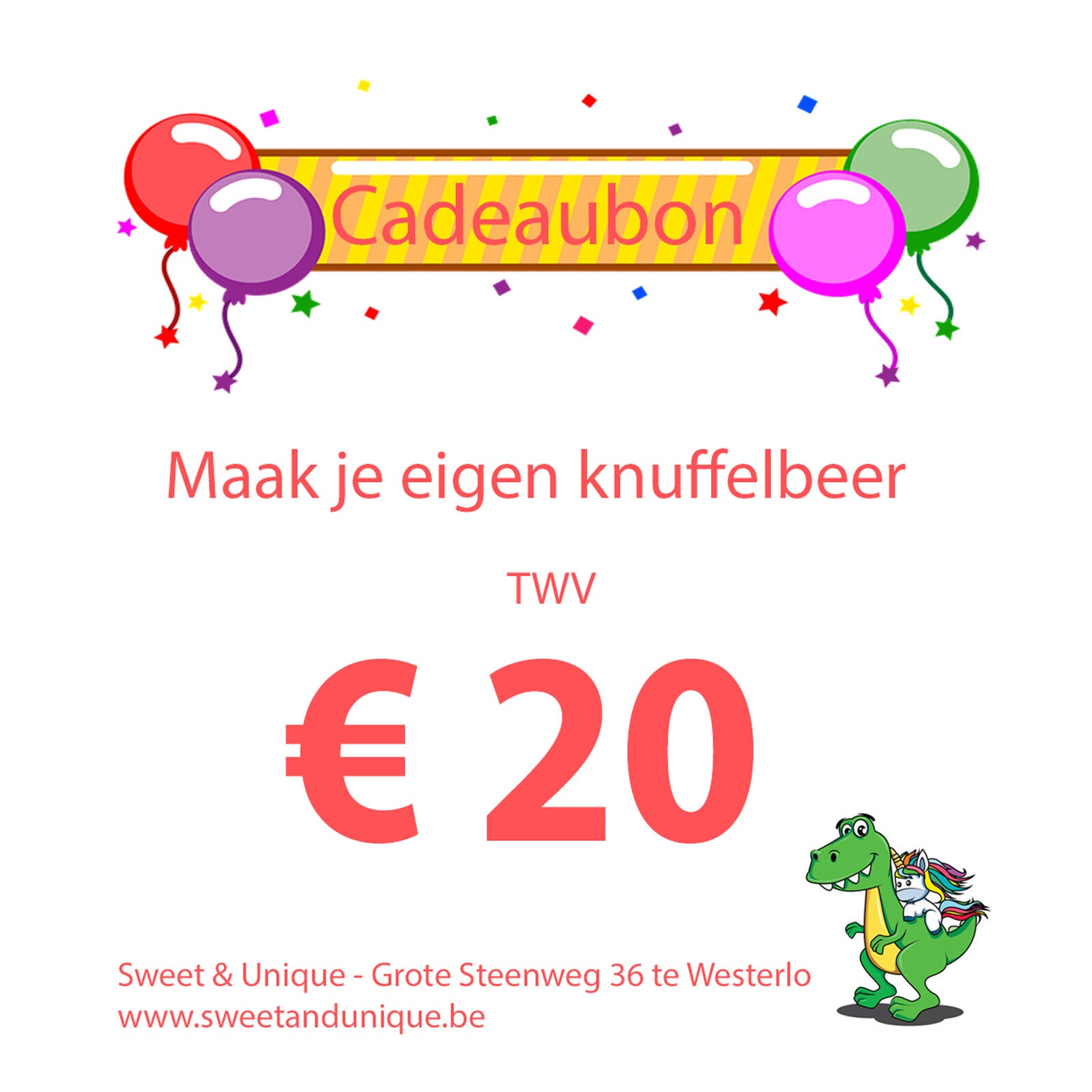 Een cadeaubon van € 20 om een knuffelbeer te maken.